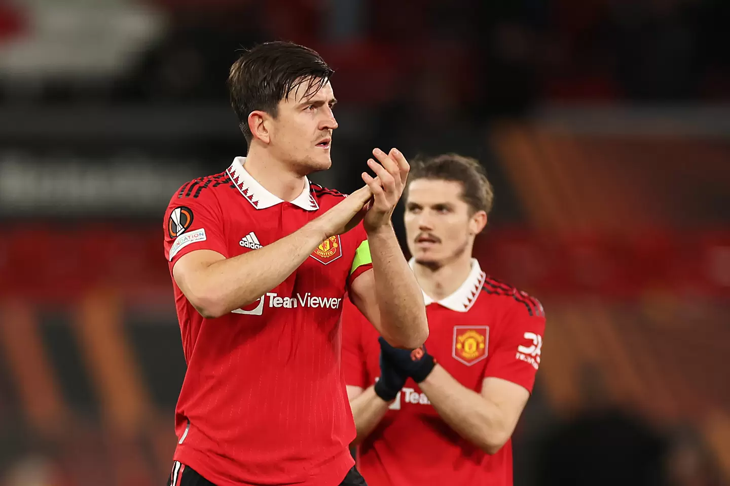 Дефанзивците на Манчестер јунајтед, Тајрел Маласија и Хари Мегваер се погрижија Севиља да се одржи до реми 2-2 на Олд Трафорд во првиот четвртфинален натпревар во Лига Европа, постигнувајќи по еден автогол.
