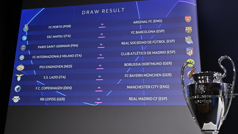 Во седиштето на Европската фудбалска асоцијација (УЕФА), попладнево со жрепка беа одредени двојките за осминафиналето во Лигата на шампионите.