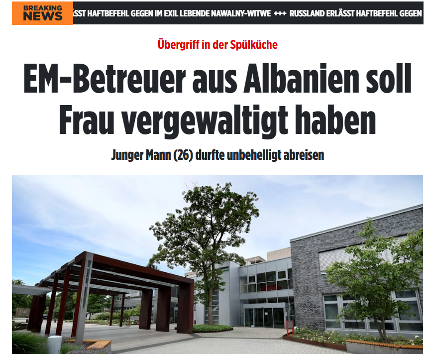 Неименуван надзорник во албанската репрезентација кој има 26 години е осомничен дека сексуално злоставувал млада девојка (18) во тоалетот во хотелот каде бил сместен националниот тим за време на Европското првенство. По нападот на 23 јуни во 19 часот и 30 минути вработен во хотелот за спортско училиште „Кајсерау“ во Камен повикал полиција, додека јавното обвинителство во Дортмунд ја потврди истрагата.