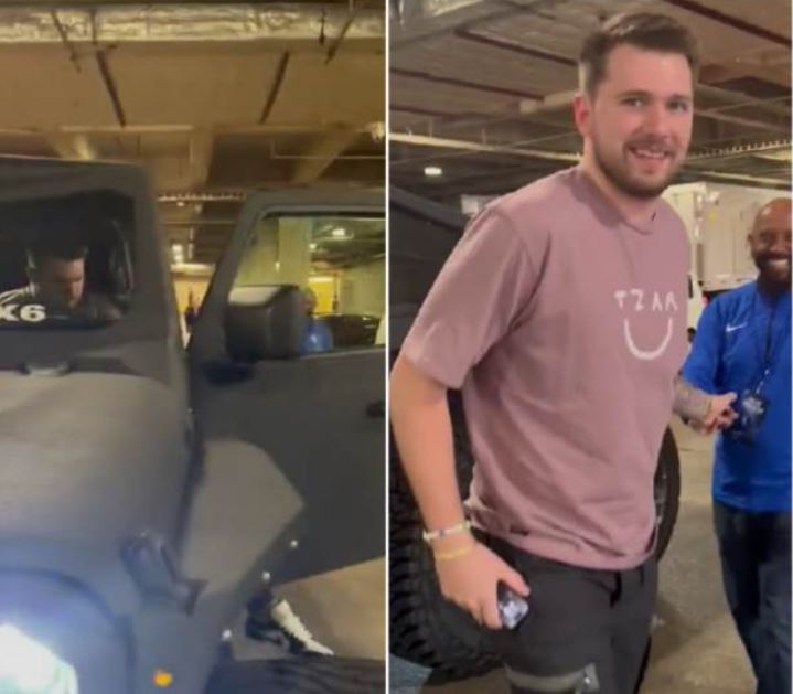 Luka pulled up in a TANK ahead of tonight's game 😳🚛