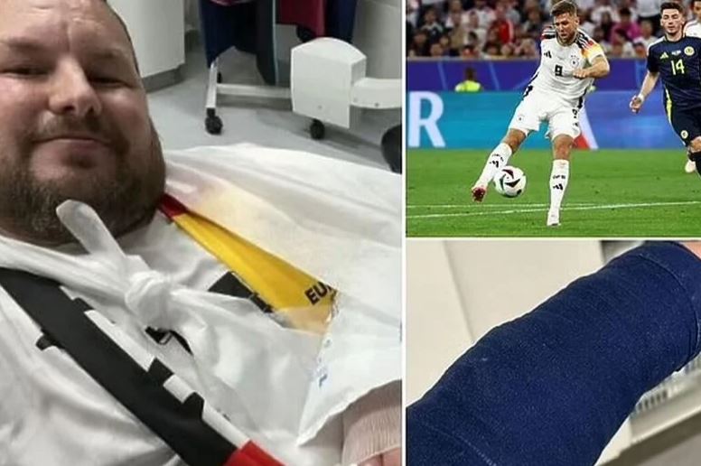 🇩🇪🤕 A Germany fan named Kai broke his hand after accidentally being hit by a Füllkrug shot during the warm-up for the Scotland game.
