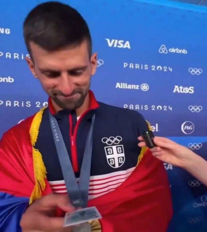 Новак Ѓоковиќ во недела на 4 август официјално освои се, откако на неговите гради блесна златниот медал на Олимпијадата. По мечот во кој го совлада Карлос Алкараз со 7:6, 7:6, Србинот долго време одговараше на прашања во микс зоната, а потоа и на прес-конференцијата. Новинарите се потрудија шампионот да го памети тој ден до крајот на животот, па му подарија посебен подарок.