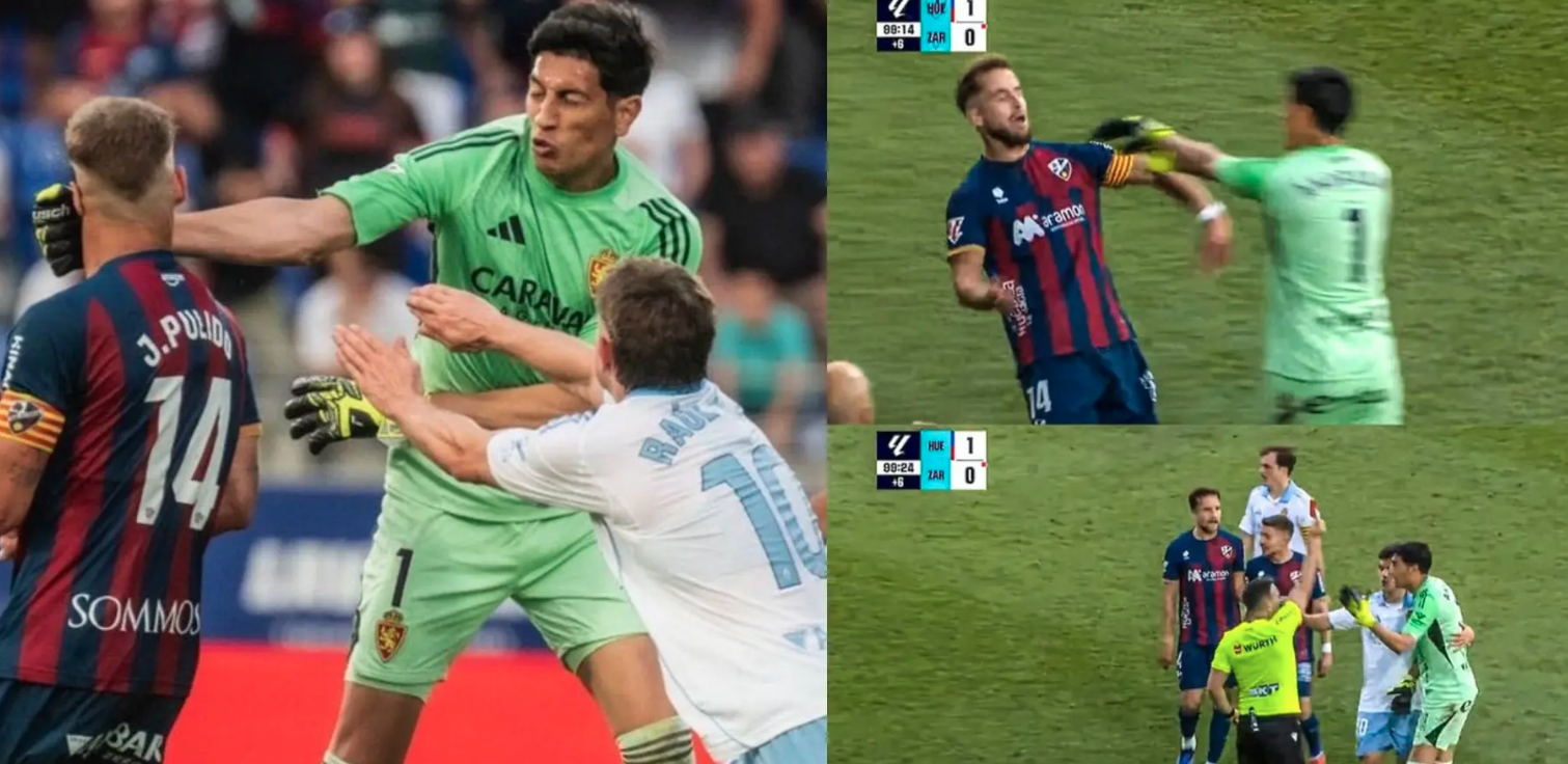 Esteban Andrada, hoy arquero del Zaragoza, fue EXPULSADO, SE VOLVIÓ LOCO Y LE PEGÓ UNA PIÑA en la cara al capitán del Huesca.