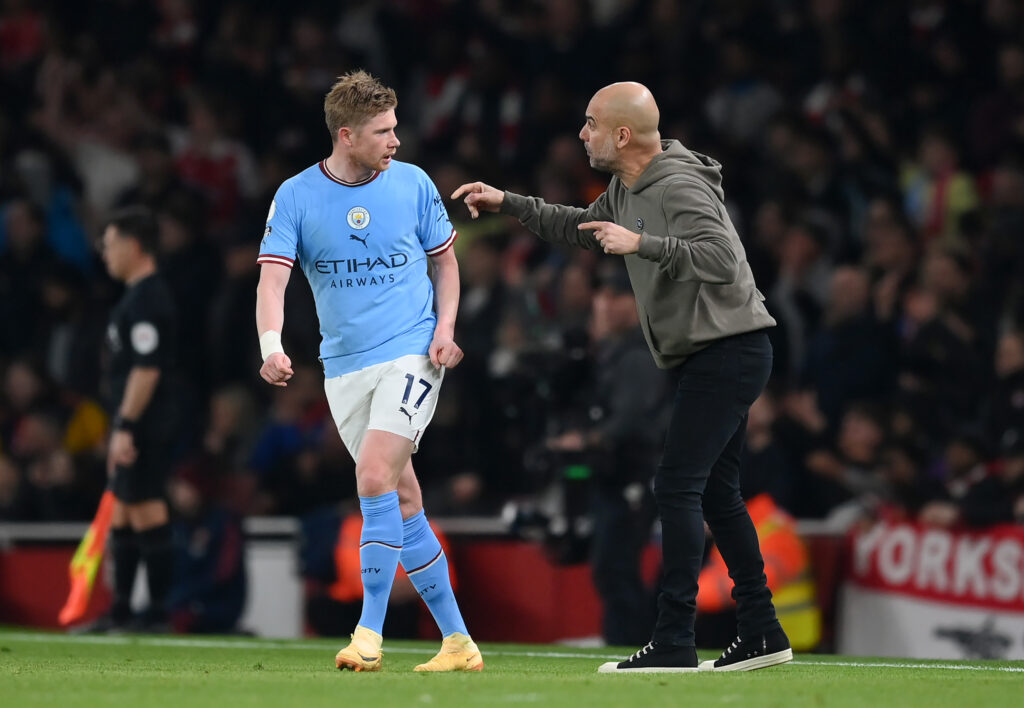 Навивачите на Манчестер Сити чекаа Кевин де Брујн да се врати на теренот, а менаџерот на англискиот и европски првак, Пеп Гвардиола не ја симна насмевката од неговото лице.