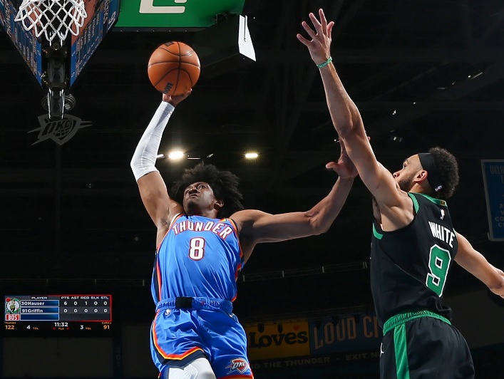 Оклахома Сити Тандер убедливо го победи лидерот во Источната конференција Бостон со резултат 150:117, што е втор најтежок пораз на Селтикс во историјата на лигата по бројот на примени поени. Келтите примија повеќе поени само во 1979 година во дуелот со Детроит Пистонс. Исто така, тоа беше прв пат Тандер да постигне повеќе од 150 поени во еден натпревар откако франшизата се пресели во Оклахома.