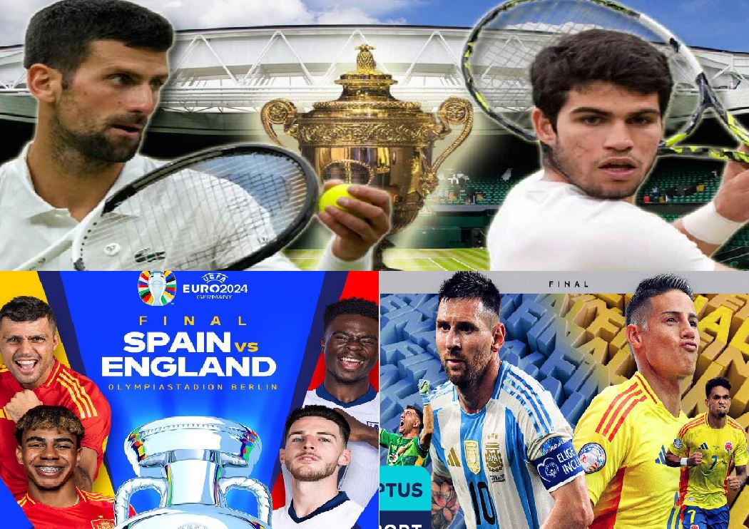 Љубителите на спортот оваа недела можат да уживаат во три големи финалиња. Спортското попладне почнува со финалето на Вимблдон помеѓу Новак Ѓоковиќ и Карлоз Алкараз, кој се игра во 15 часот, а продолжува вечерва во 21:00 часот со финалето на ЕУРО 2024 помеѓу Шпанија и Англија. Големите финалиња за денеска ќе бидат заокружени со пресметката помеѓу Аргентина и Колумбија за пехарот на Копа Америка, дуел кој започнува 02 часот по локално време, ноќта кон понеделник.
