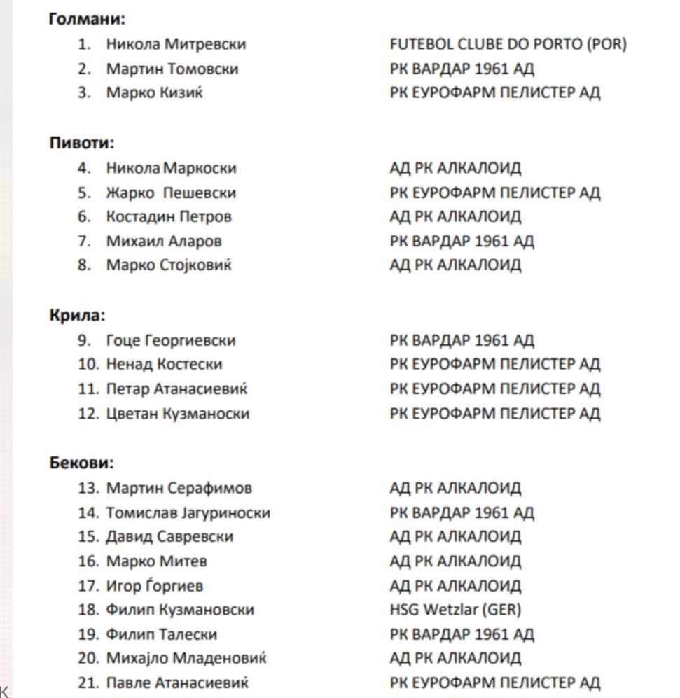 Селекторот на машката ракометна репрезентација, Кирил Лазаров го објави списокот на повикани ракометари за претстојните натпревари против репрезентациите на Луксембург и Турција во рамки на европските квалификации.