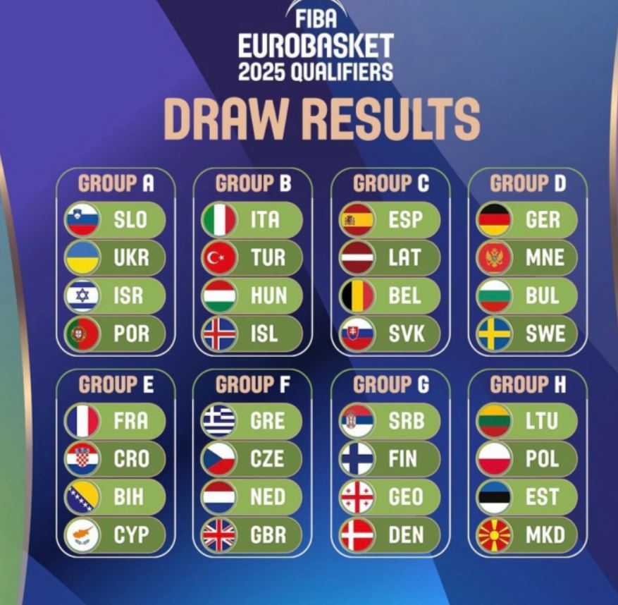 Македонската кошаркарска репрезентација за место на Европското првенство во 2025 година ќе се бори со Литванија, Естонија и Полска во Х-групата од квалификациите кои ќе почнат во февруари, наредната година.