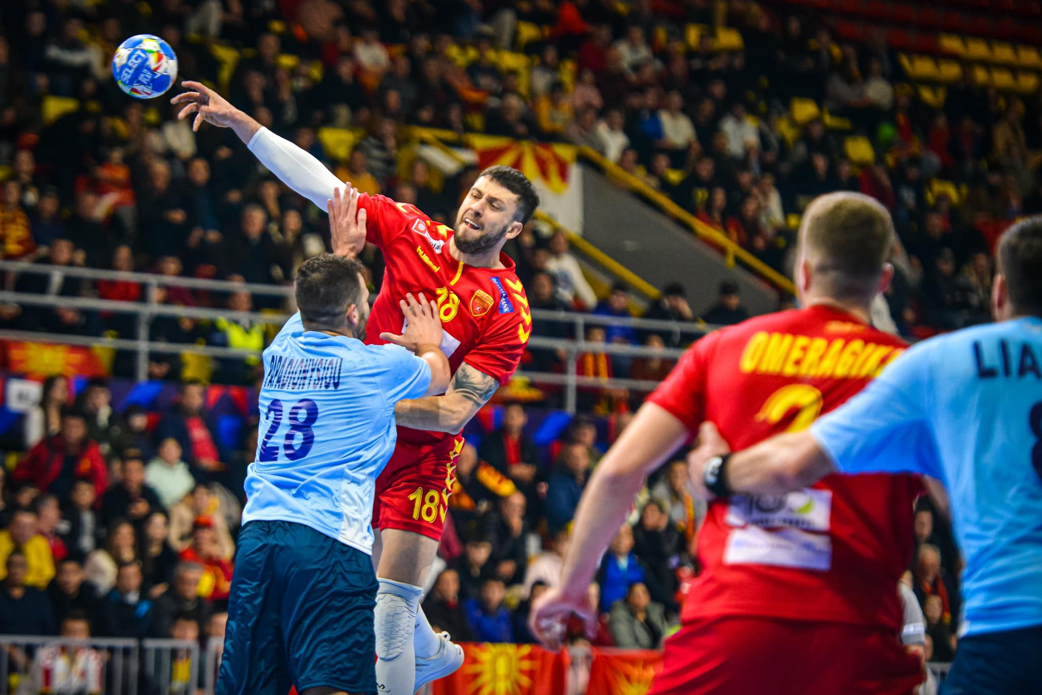 Избраниците на селекторот Кирил Лазаров со серија од 6-1 во финишот на првото полувреме заминаа на пауза со предност од три голови (18-15).