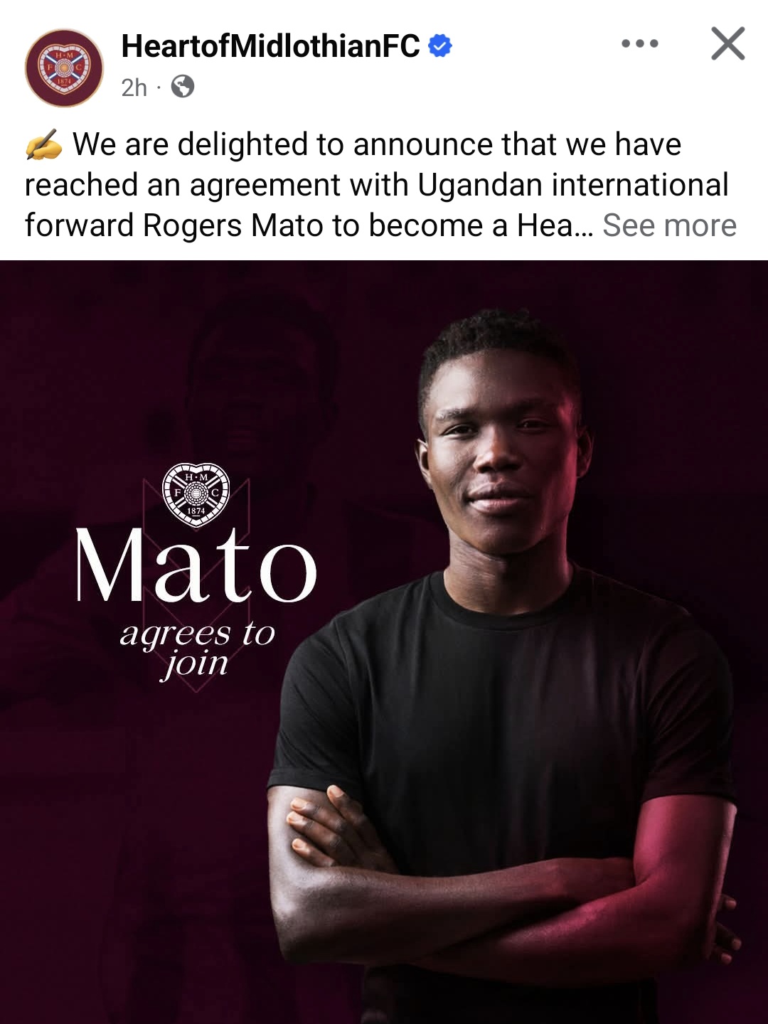Откако шкотскиот тим објави дека постигнал преддоговор со фудбалерот на Вардар, Роџерс Мато, во јуни како слободен играч да се пресели кај нив, стигна информација од Вардар дека е прифатена понудата од Канзас Сити од МЛС Лигата за услугите на 22-годишниот фудбалер. Оваа понуда се движи околу 1 милион евра. Вчера Хартс соопшти дека се договориле за тригодишна соработка со Мато, кој по завршувањето на договорот со Вардар ќе се пресели кај нив. Со оглед на тоа дека Мато влегува во последните шест месеци од договорот со македонскиот клуб, има право да преговара со други клубови.