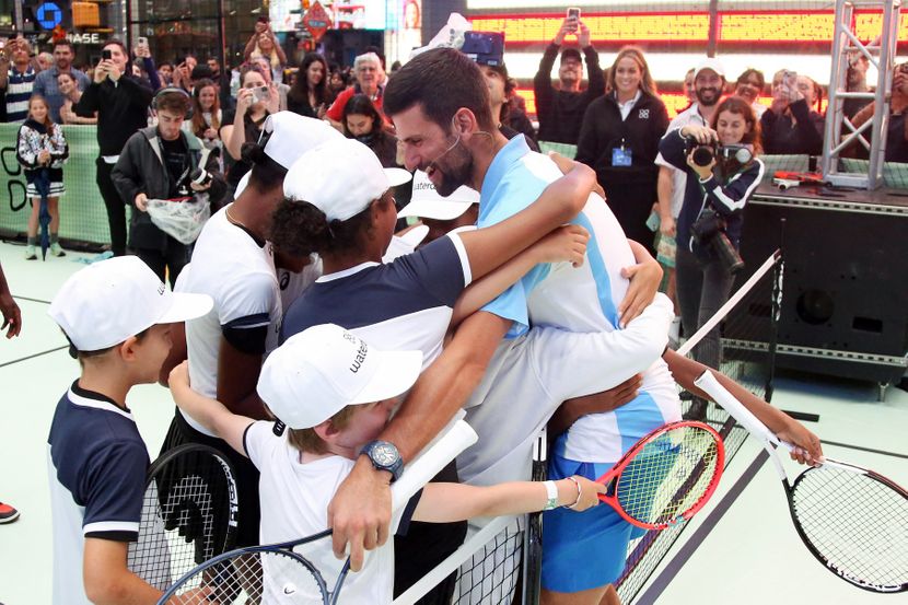 Новак стана првиот човек кој играл тенис на Тајмс Сквер: Децата го гушкале и не сакале да го пуштат