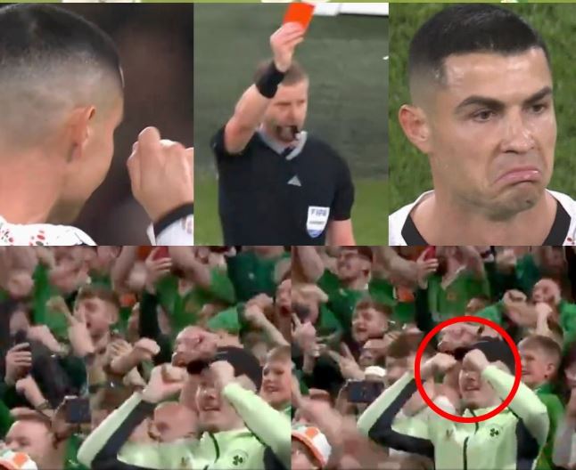 Cristiano Ronaldo reaction to his red card vs Ireland