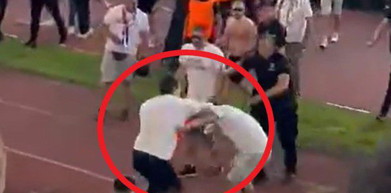 Според неофицијални информации, тој нешто погрубо се однесувал кон реката навивачи која се спуштала кон теренот. Поради ова изби конфликт, летаа тупаници, а на Твитер се појави ново видео од инцидентот од поинаков агол.