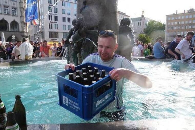 Шкотските навивачи направија „хаос“ во Минхен, капејќи се во фонтаната каде го ладат пивото