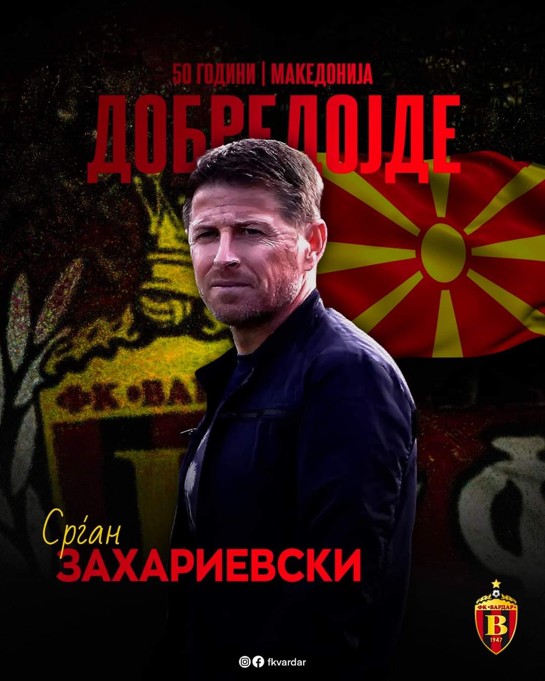 Срѓан Захариевски и официјално е назначен за нов тренер на Вардар. Ова доаѓа откако Горан Петрески Чунга поднесе оставка по шокантниот пораз од Воска од 3:0.