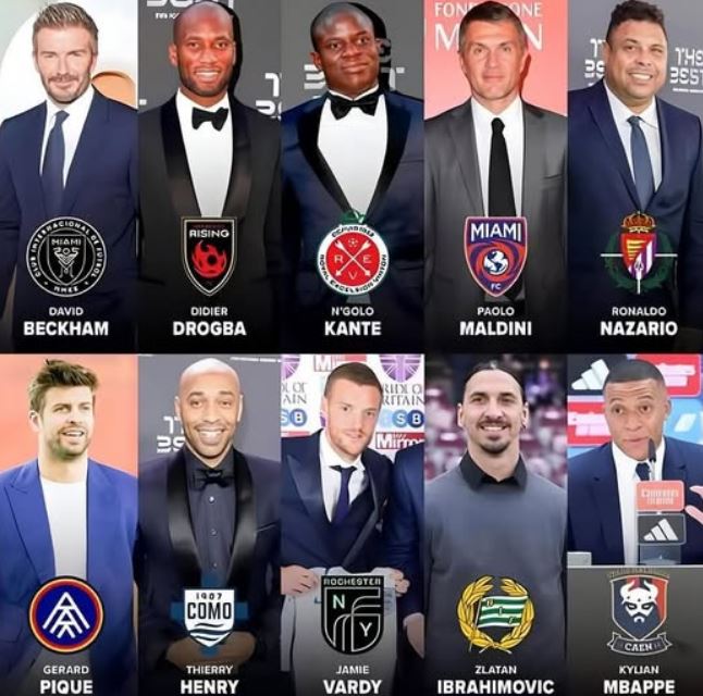 Голем дел од фудбалерите по завршувањето на професионалното играње на фудбал, остануваат во спорот. Некои како тренери, други како спортски директори, а некои како сопственици на фудбалски клубови, или мнозински или малцински акционери. Еве дел од познатите фудбалски имиња кои поседуваат фудбалски тим или имаат акции.
