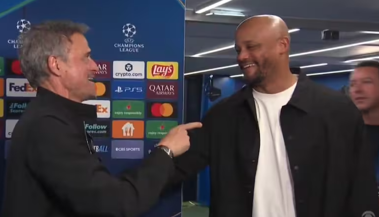 ПСЖ го совлада Баерн Минхен со 5:4 во можеби највозбудливиот меч во историјата на ЛШ. По натпреварот тренерите Енрике и Компани се сретнаа во микс зоната каде што се даваа изјави.
